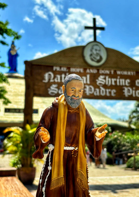 Embrace Faith: 12-Inch Padre Pio Statue with Open Arms and Stigmata