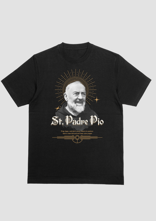 Men's St. Padre Pio Inspirational Graphic T-Shirt – "Pray, Hope, and Don't Worry"